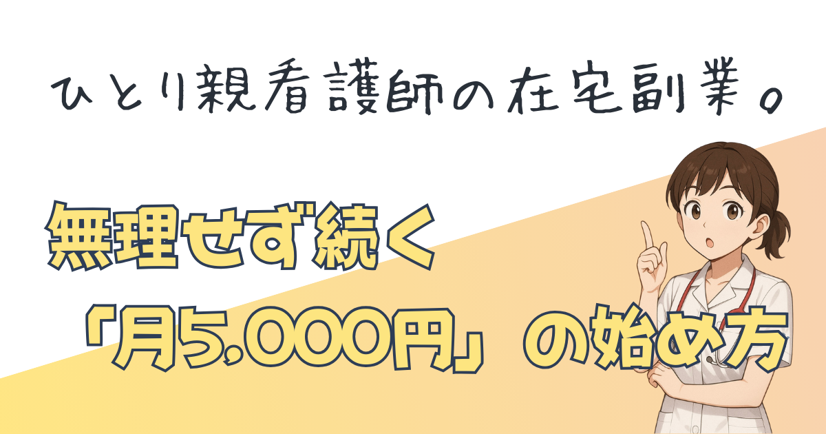 4児を育てるシングルマザーです。看護師歴は15年以上。総合病院で病棟・外来を経験し、その後クリニックへ転職しました。離婚をきっかけに家計を根本から見直し、ひとり親向け制度を申請。在宅でできる副業も小さく始め、収入の柱を増やして暮らしを安定させてきました。現在はWebライターとしても活動し、開始4ヶ月で月3万円を達成。現場で培った段取り力で、忙しくても実践できる手順に落とし込んで情報発信しています。