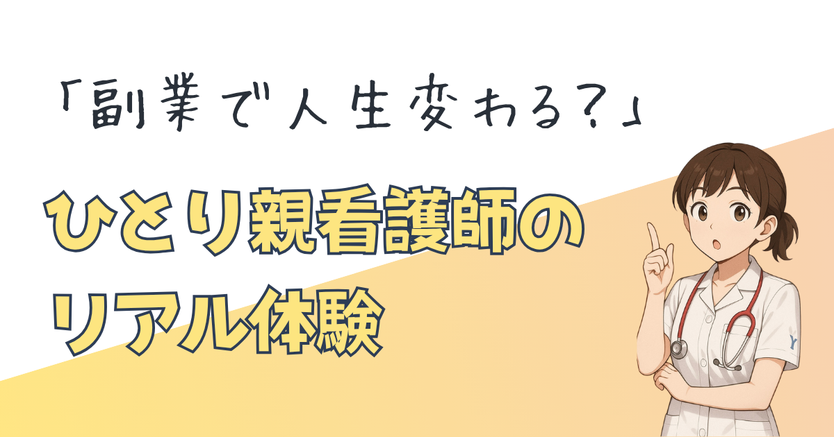 夜勤・子育て・家計の不安を抱える看護師が、無理なく収入の柱を作るための情報を発信しています。
