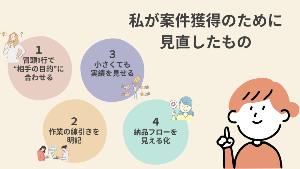 次は“案件待ち”だけでなく自分発信も強化したい!