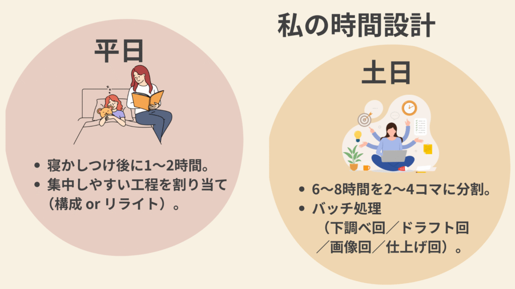 時間設計|平日1〜2時間・土日6〜8時間の回し方