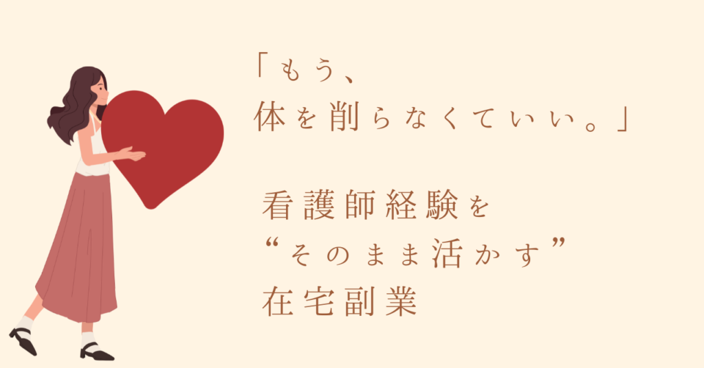 という点を考えると、体を壊しながら夜勤を増やすより、ずっと安心できる副業だと言えます。