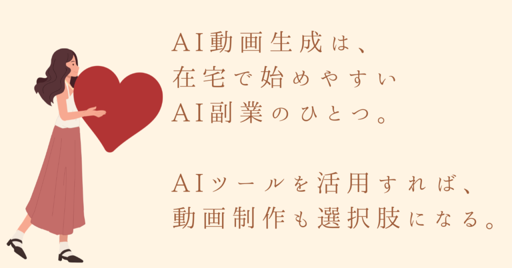 AI動画生成副業は、特別な動画編集スキルがなくても始めやすく、在宅で取り組めるAI副業の一つです。