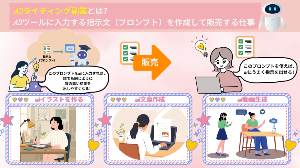 ここでは、AIプロンプト販売副業の代表的な仕事内容を紹介します。