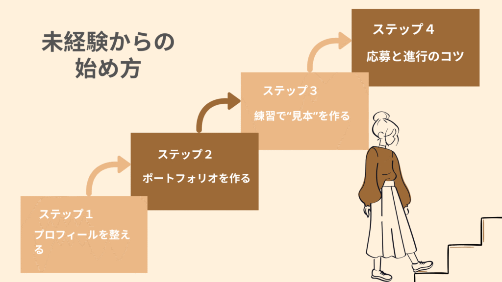 - まずはプロフィール・ポートフォリオ・小ロットの実績作りから始めましょう。
