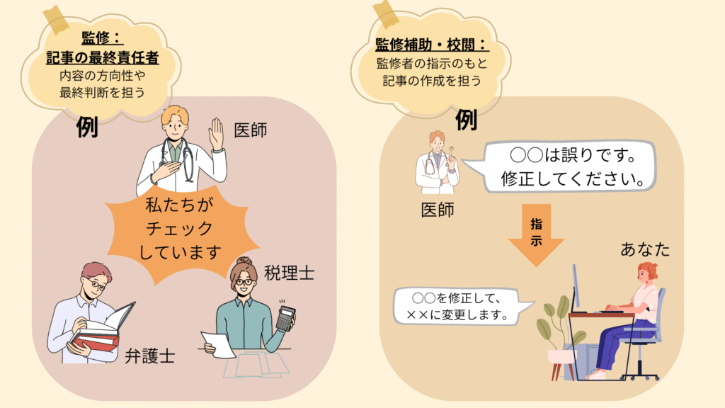 2. 仕事内容と守備範囲|「監修」と「監修補助・校閲」の違い