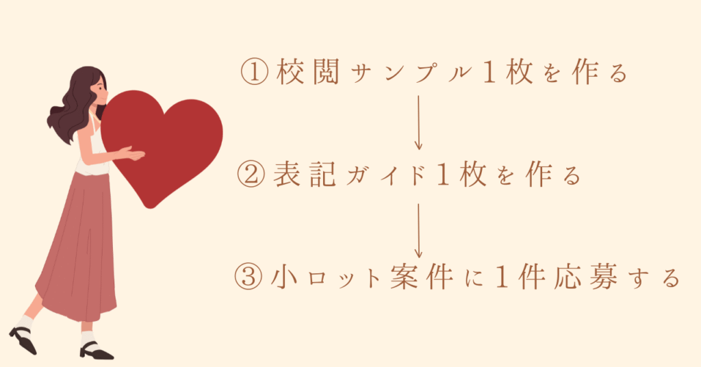 - 応募文で「最初は1,000〜2,000字の小ロット希望」「修正履歴ON+理由併記」を伝えます。