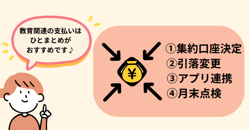 - ポイント:給食費・集金・学童費は一つの口座かカードに集約。