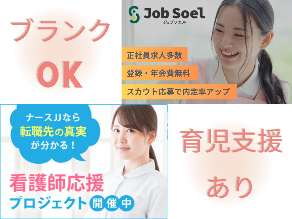 ナースJJやジョブソエルで「ブランクOK」「育児支援あり」と記載のある求人には、