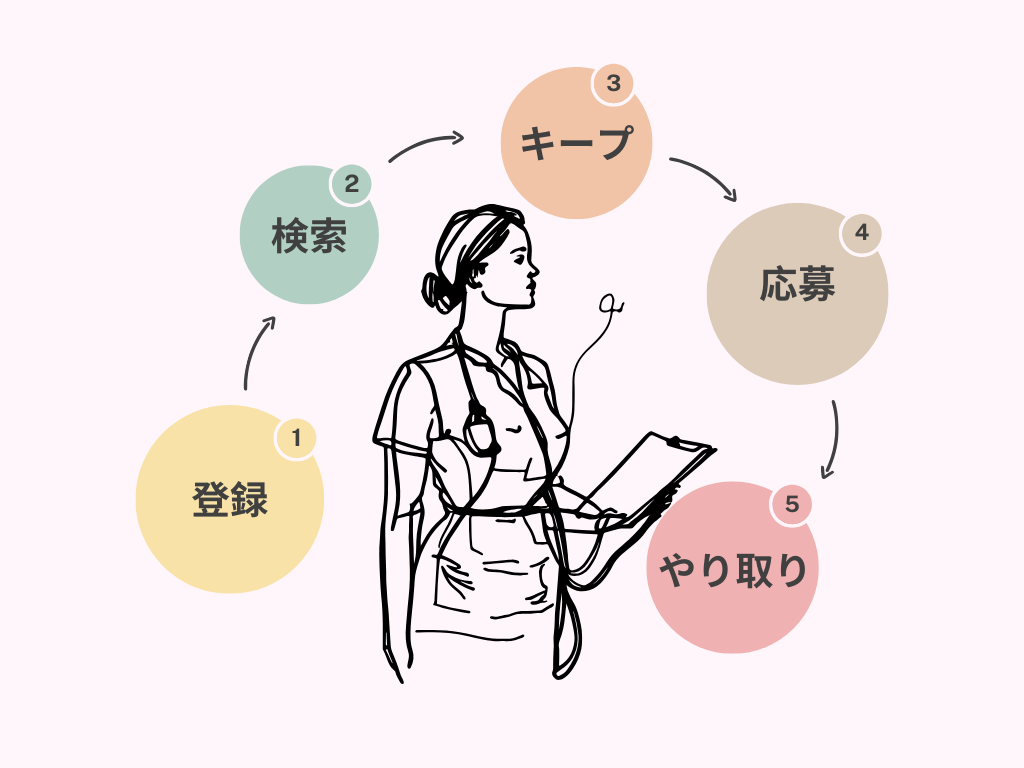 • すき間時間で進める「登録→検索→応募→面接」の流れ